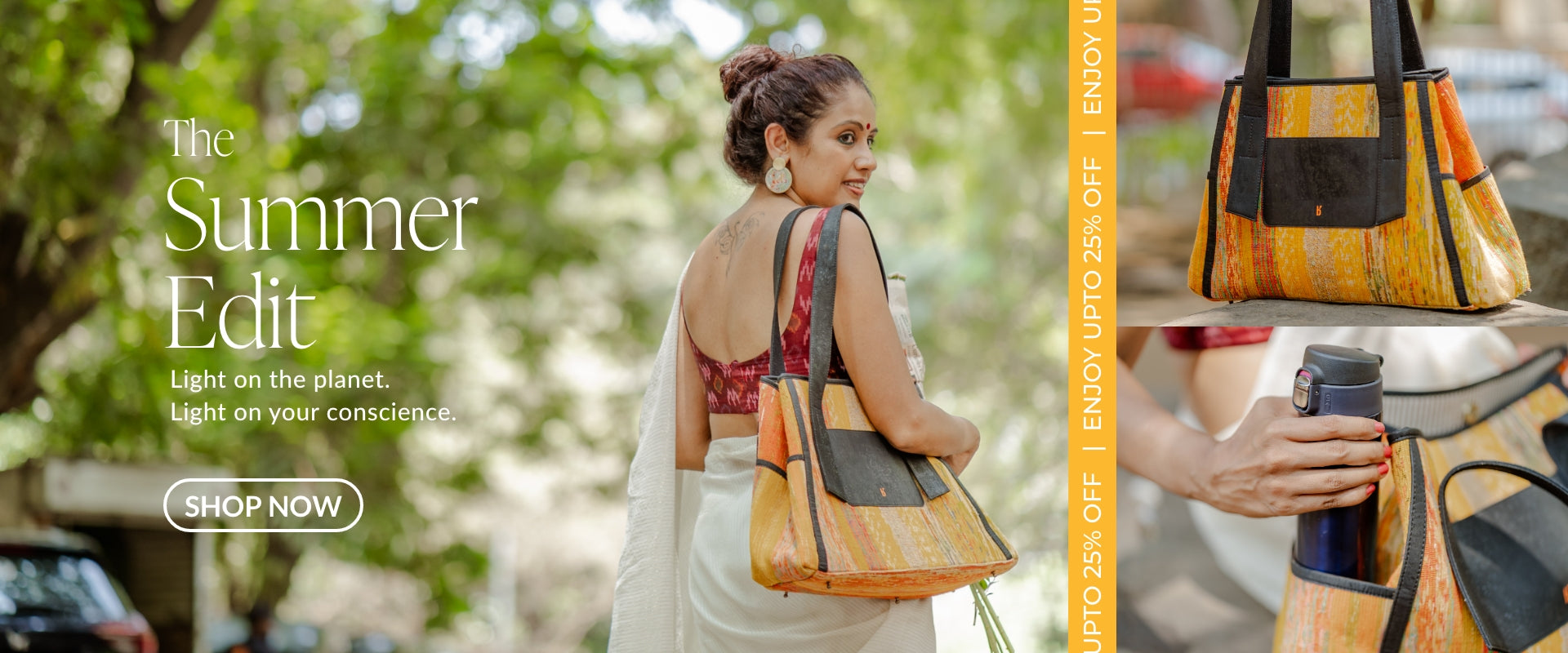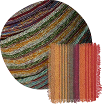 Handwoven fabrics made using recycled and post-consumer recycled yarn. All fabrics are woven on traditional handlooms that do not require electricity, thereby reducing the carbon footprint.
