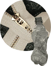 Eco friendly zippers recycled from PET bottles and other post-consumer materials.